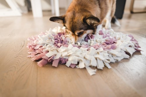 There are also so-called 'sniffing mats'. These mats consist of strings of fabric in which you can hide the reward. You can make your own sniffing mat or buy one.
