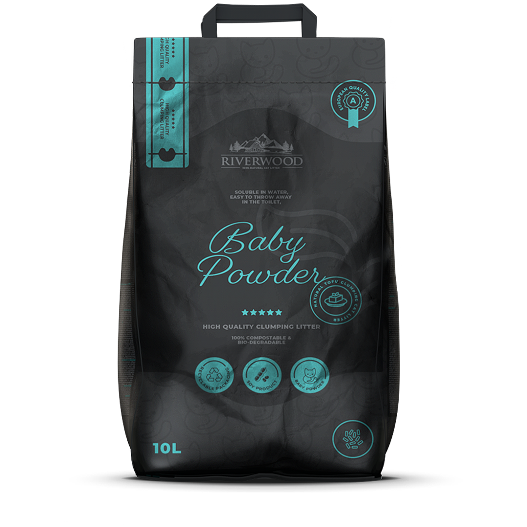 Riverwood Tofu kattenbakvullingen zijn van premium kwaliteit en zijn 100% natuurlijk en biologisch afbreekbaar. Je kunt de kattenbakvullingen (zonder de uitwerpselen van de kat) simpelweg in kleine hoeveelheden door het toilet spoelen of je kunt het kwijt in de groencontainer. De kattenbakvulling is klontvormend en neemt snel vocht op. Dit maakt het gemakkelijk om de kattenbak te verschonen; je kunt simpelweg de klonten verwijderen en de kattenbak weer aanvullen met schone tofu kattenbakvulling. Denk eraan dat je de kattenbak een keer in de zoveel tijd volledig ververst.